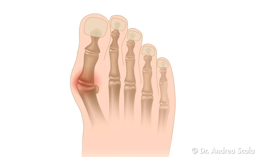 L’alluce colpito dalla malattia si blocca e diviene molto dolorante e infiammato.